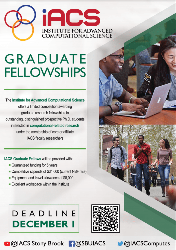 Prospective graduate students should consider applying for the prestigious IACS Graduate Fellowship.